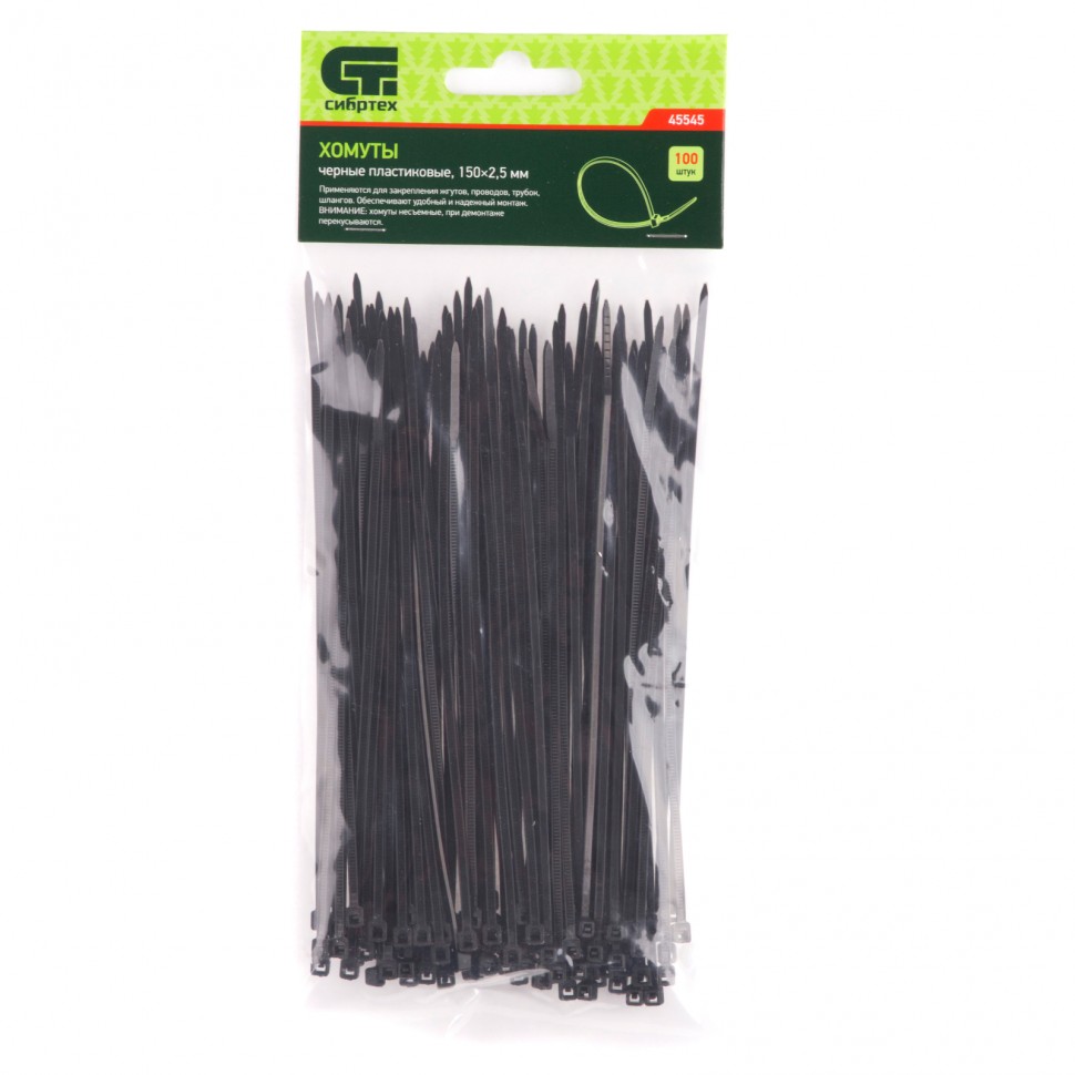 —Хомут 150х2,5мм пласт.черный (100шт) Сибртех 45545