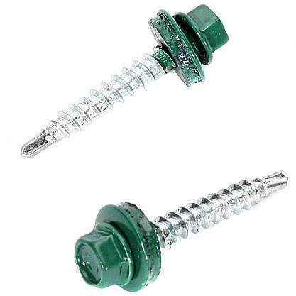 Саморез с шестигранной головкой, шайбой с резиновой уплотняющей прокладкой и сверлом на конце, позволяющим осуществлять монтаж без предварительного засверливания.