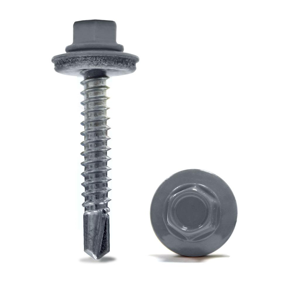 Саморез с шестигранной головкой, шайбой с резиновой уплотняющей прокладкой и сверлом на конце, позволяющим осуществлять монтаж без предварительного засверливания.