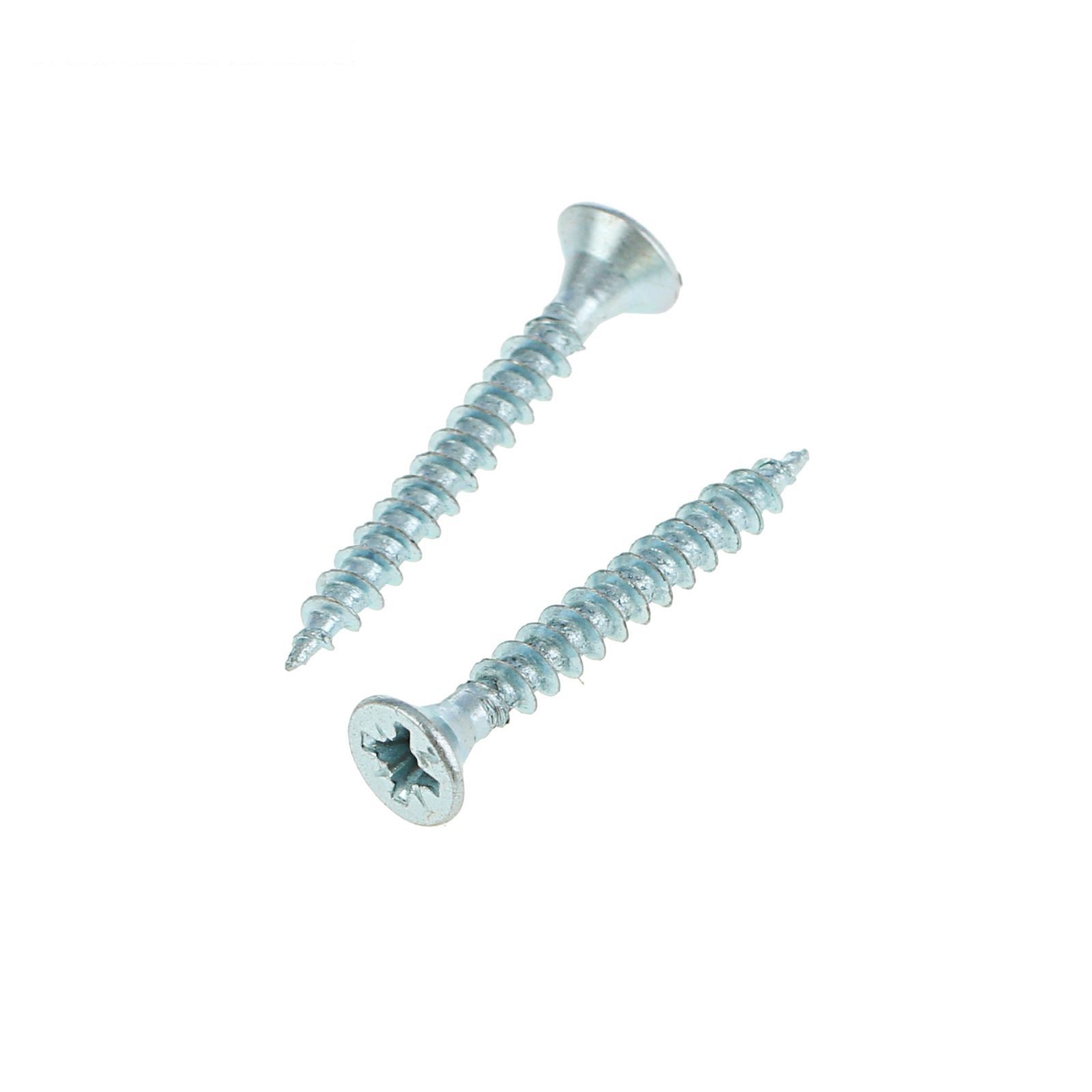 Универсальный саморез имеет двойной крестообразный шлиц PZ и потайную головку.