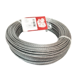 Стальной трос используется для изготовления растяжек при установке антенн, осветительных приборов и других элементов с плохой устойчивостью. Трос толщиной 1 мм изготовлен из плетеных стальных волокон, которые хорошо справляются с нагрузками.