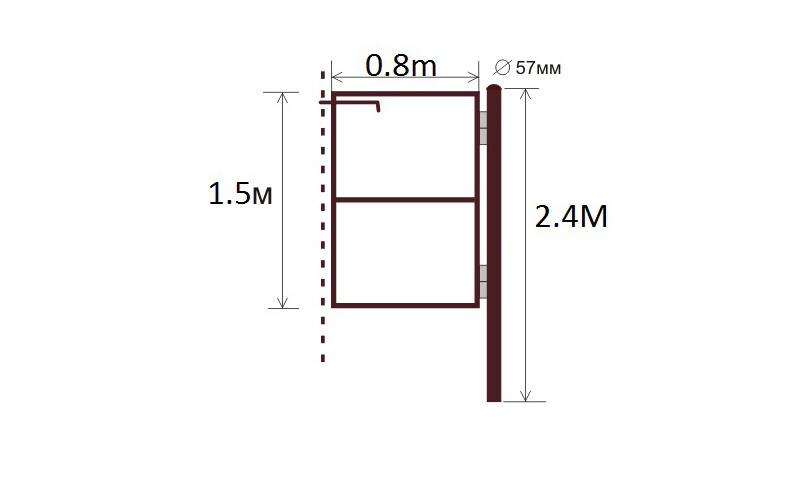 Рама для калитки 1.5 х 0.8 м, выполненная из профилированной трубы 40х20 мм - простой и доступный вариант для того, чтобы сделать вход для вашего дачного участка. Выполнена в стандартном размере (индивидуальные размеры обговариваются персонально с менеджером). Заполняется профлистом или сеткой и подходит для заборов высотой 1.5 метра. Оснащена засовом. Рама для калитки 1.5х0.8 м поставляется со столбом Ø57 мм и высотой 2.4м. Внимание! Если расположение калитки будет отдельно от ворот вам потебуется дополнительный столб.