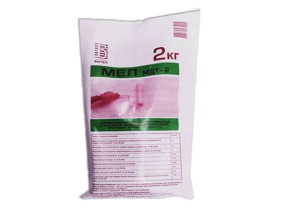 Мел МДТ-2 ВИТЕП используется при строительных и ремонтных работах. Применяется для побелки потолков, как компонент для штукатурки, как наполнитель в эмалях, красках, шпатлевках, водных составах и др. Так же мел можно применять в качестве мелиоранта для раскисления почвы. Кусочки мела разрушаются при размораживании и замораживании с ежегодным перепахиванием почвы, и его действия по нейтрализации почвы сохраняются длительное время.