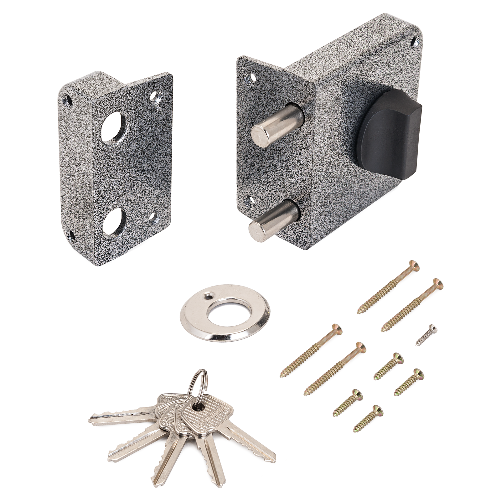 Замок накладной цилиндровый с вертушкой. Предназначен для установки на деревянные двери. Три засова круглого сечения d=13мм с максимальным вылетом 28 мм. Удаление ключевого отверстия - 60 мм. Габариты замка - 110х100х55 мм. Механизм замка под англ.ключ, идет совместно с корпусом. Закрывание и открывание замка изнутри производится вертушкой, снаружи ключом. Совместим по посадочным размерам с замками ЗН1-3-2Fort, ЗН1-3-3Fort+ Петрозаводск.