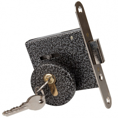 Замок врезной цилиндровый с одним прямоугольным ригелем.
